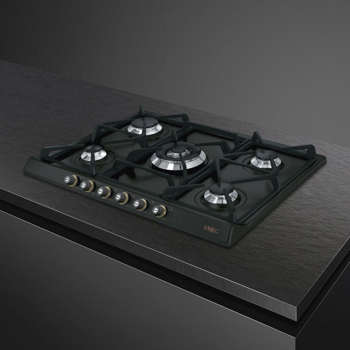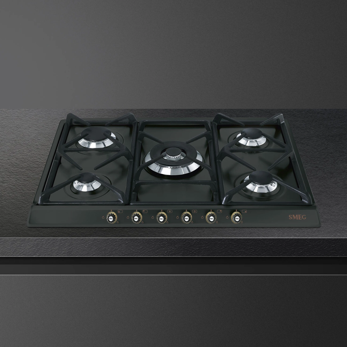 Smeg - Płyta Gazowa, 70 Cm, Cortina, Antracyt Cortina Sr775Ao Antracyt (Pokrętła Z Mosiądzu)