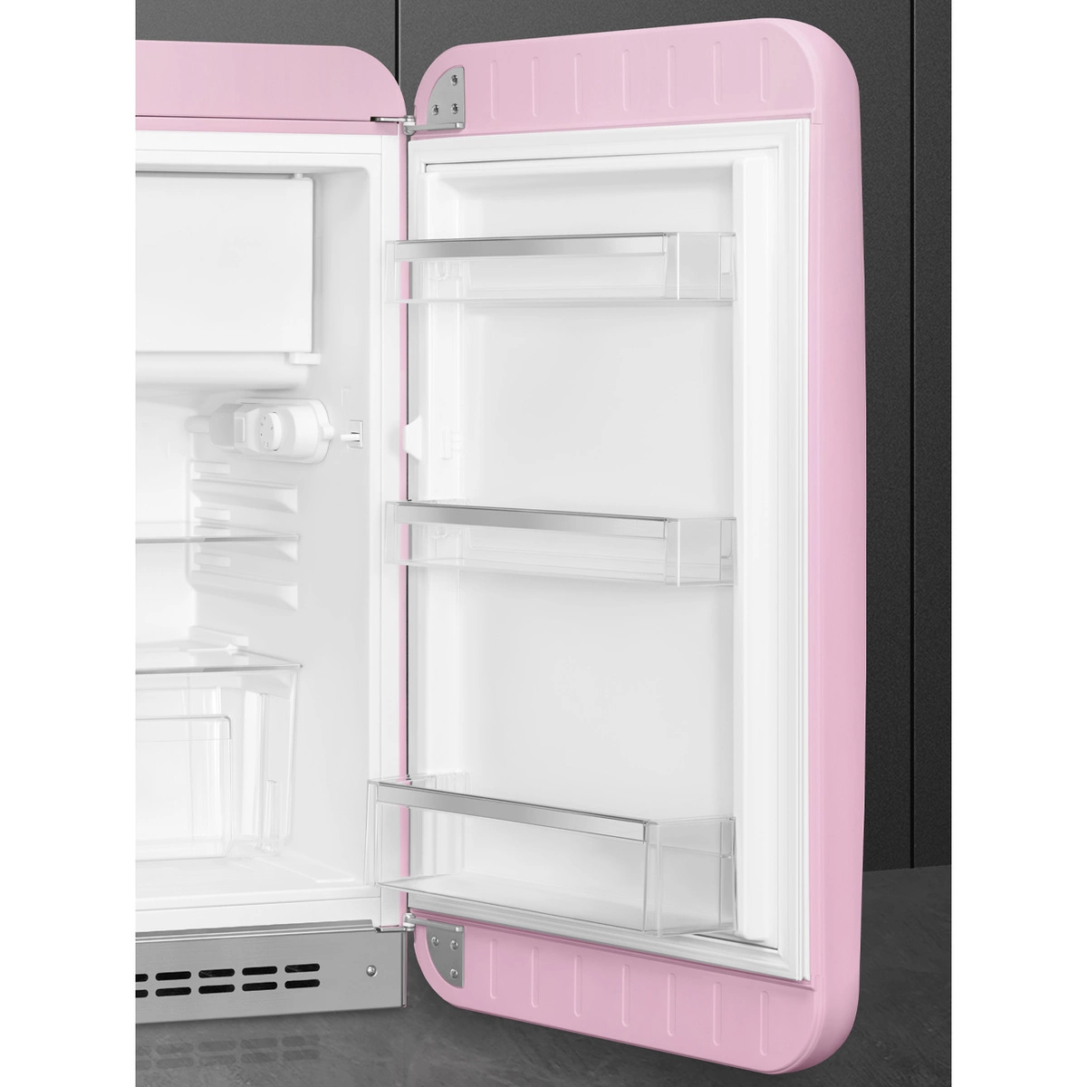 Smeg - Chłodziarko-zamrażarka, pastelowy róż 50's style Fab10Rpk6 Pastelowy róż (chromowany uchwyt).