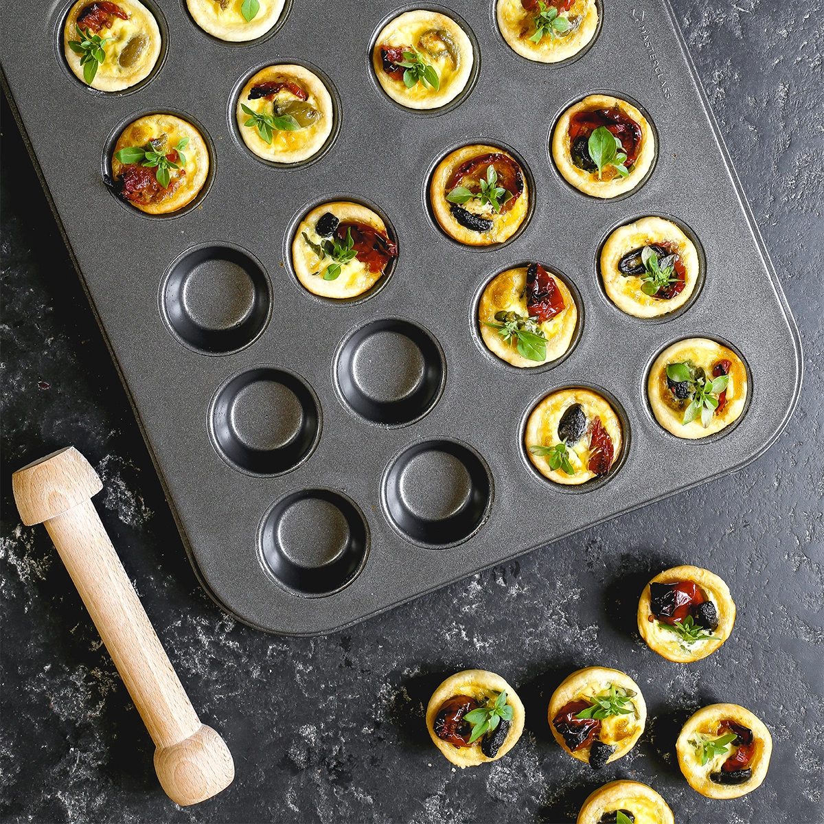 - Odkryj radość pieczenia z formą do minitart MasterClass – idealna do przygotowania 24 pysznych ciastek, które zachwycą Twoich gości!