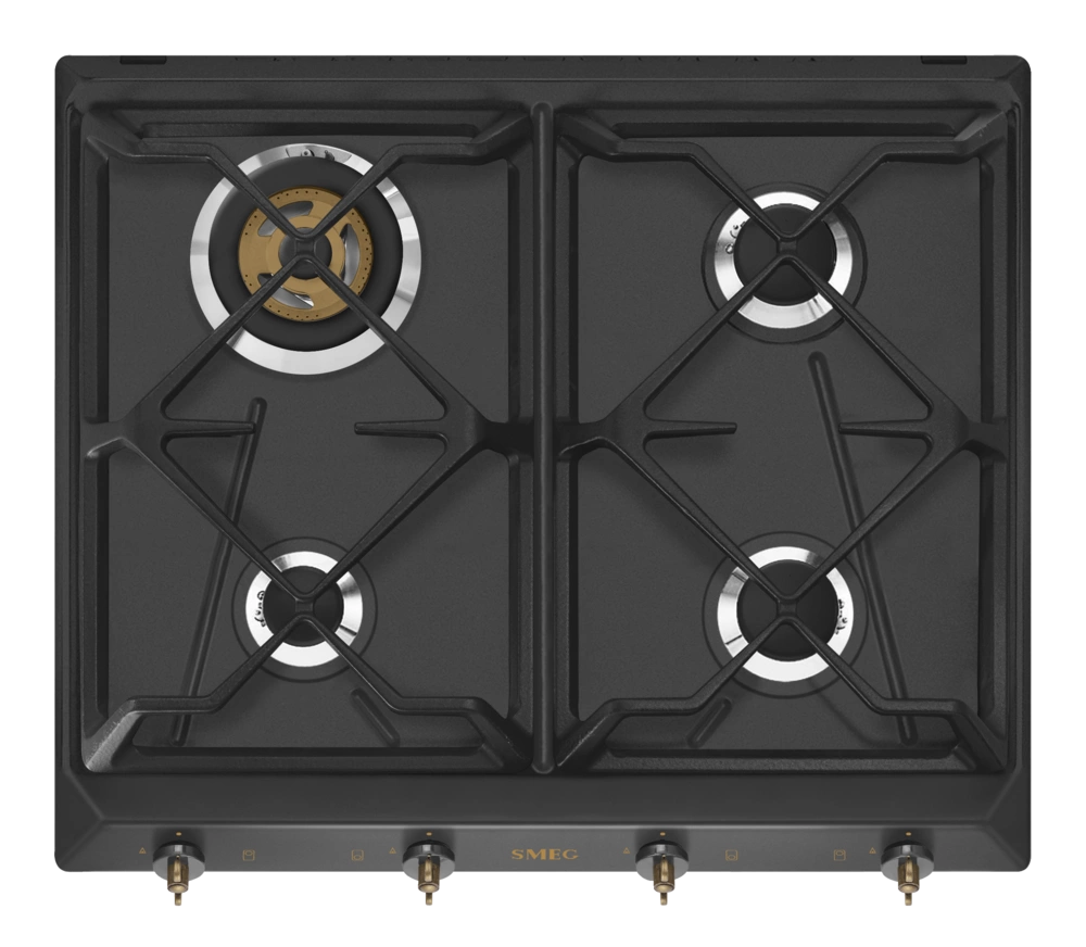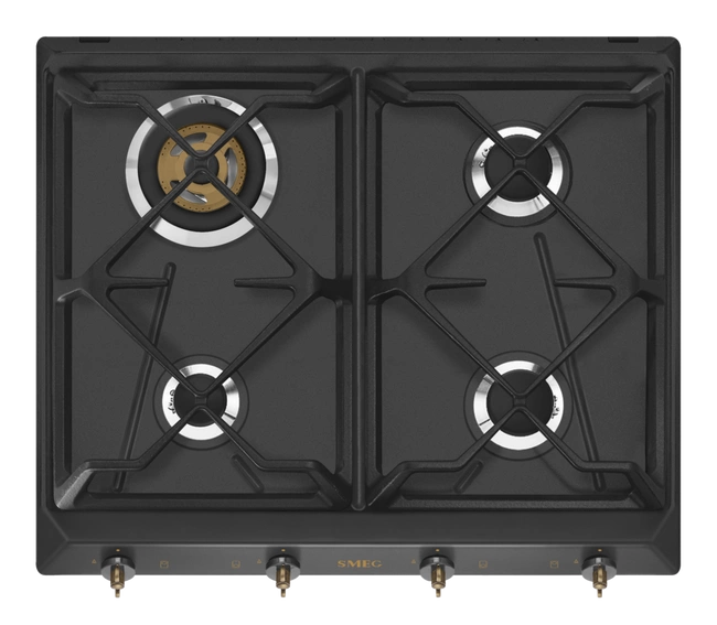 Smeg - Płyta gazowa, 60 cm, Coloniale Coloniale SRV864AOGH Antracytowy (pokrętła w kolorze mosiężnym)