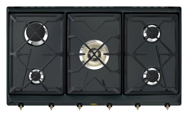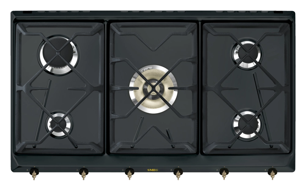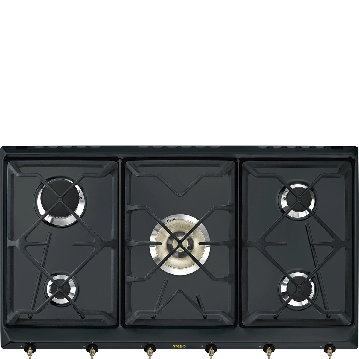 Smeg - Płyta gazowa, 90 cm, Coloniale Coloniale SRV896Aogh Antracytowy (pokrętła w kolorze mosiężnym)