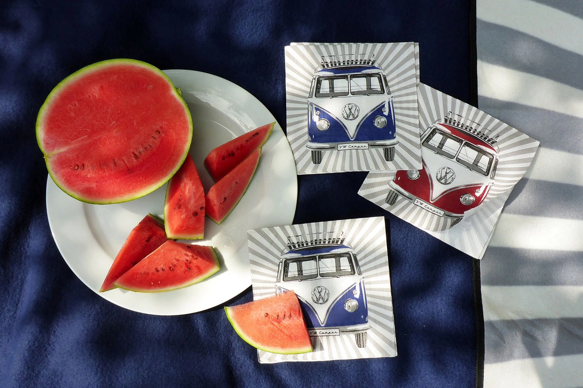 • Stylowe serwetki VW BUS SAMBA STRIPES dodadzą wyjątkowego klimatu każdemu przyjęciu. Idealne dla miłośników klasycznego designu.