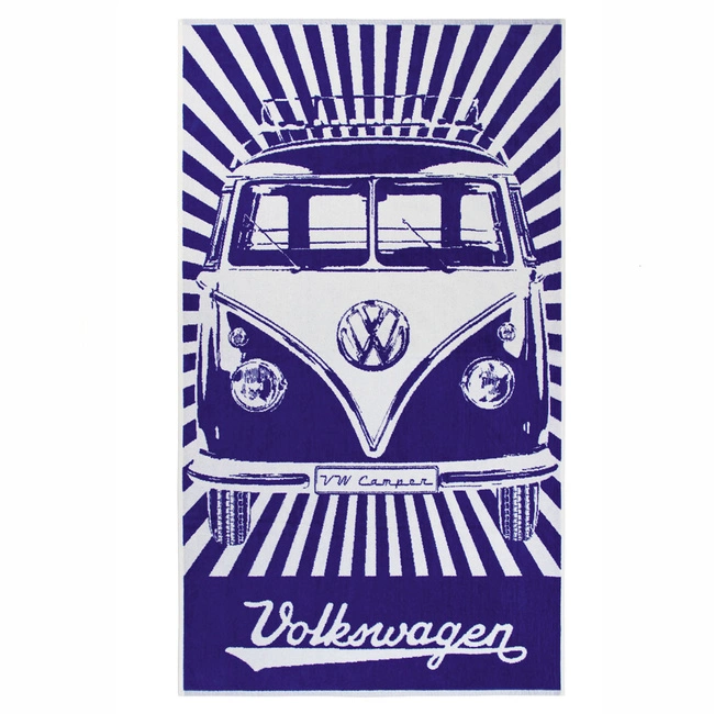 Odkryj komfort na plaży z bawełnianym ręcznikiem VW Bus Stripes. Idealny dla miłośników stylu i jakości.