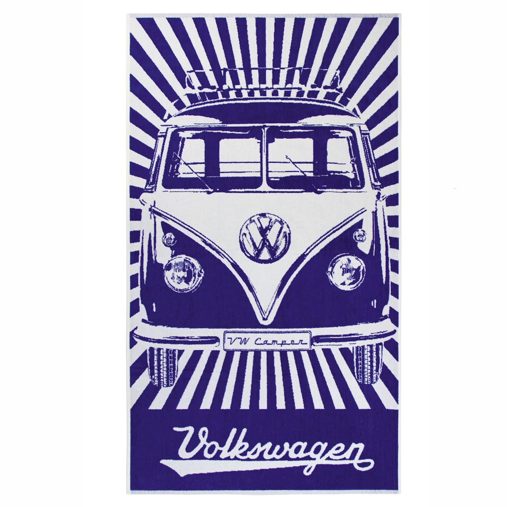 Odkryj komfort na plaży z bawełnianym ręcznikiem VW Bus Stripes. Idealny dla miłośników stylu i jakości....
