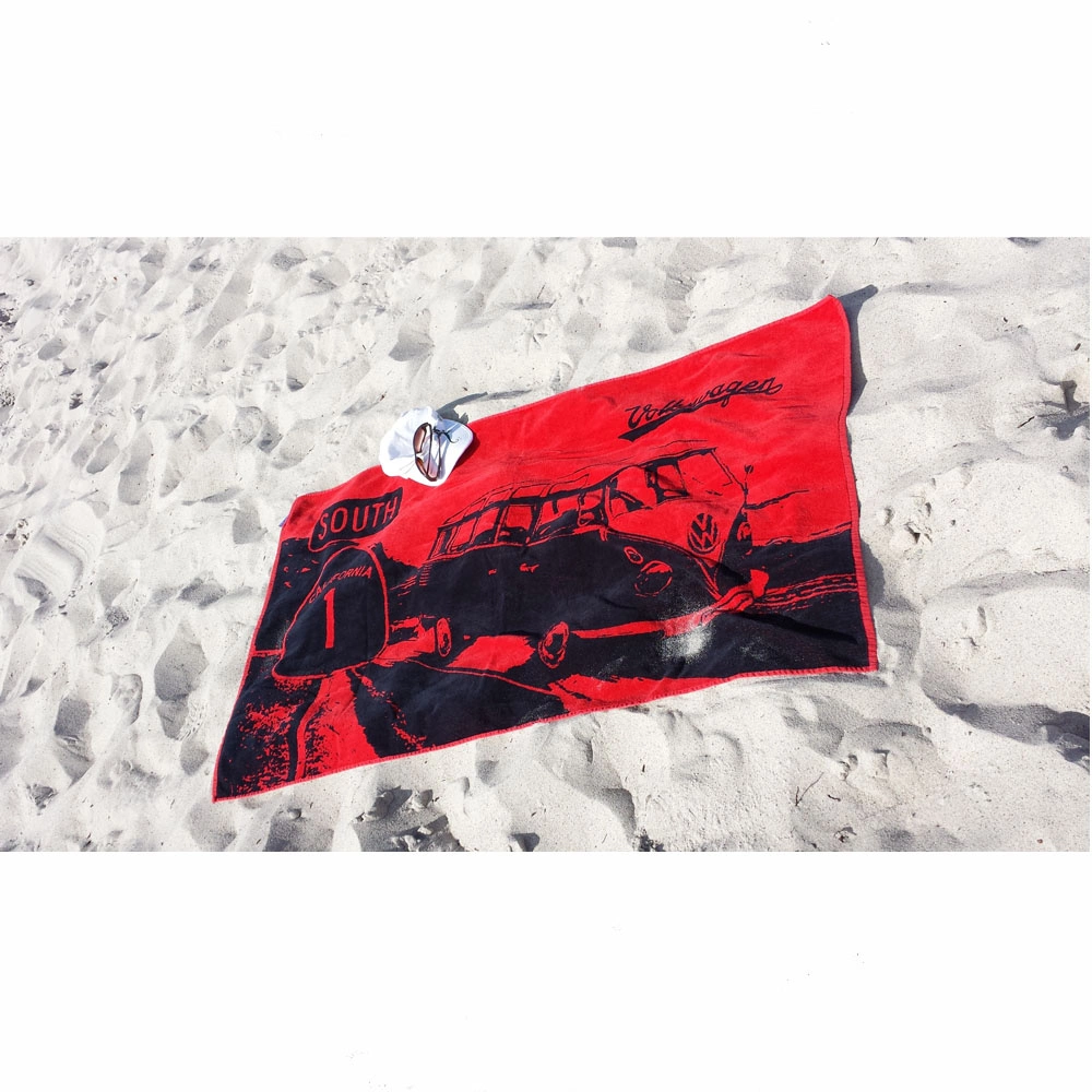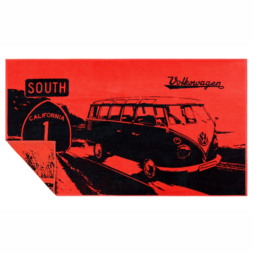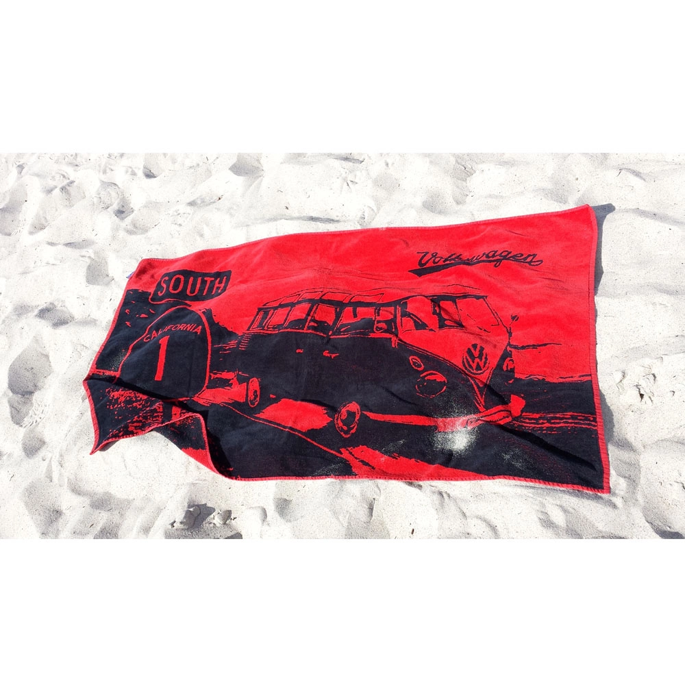Vw Ręcznik Plażowy, Bawełniany, Bus Highway 1/Red