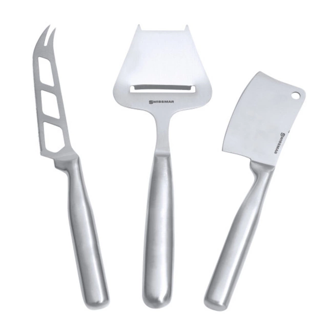 Odkryj elegancję i funkcjonalność z zestawem noży do sera SWISSMAR. Trzy precyzyjne narzędzia z trwałej stali nierdzewnej dla prawdziwych smakoszy.