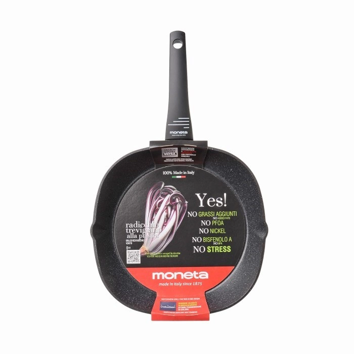 - Odkryj doskonałe grillowanie w domu z patelnią grillową Moneta 28 x 28 cm. Idealna na indukcję, zapewnia równomierne smażenie.