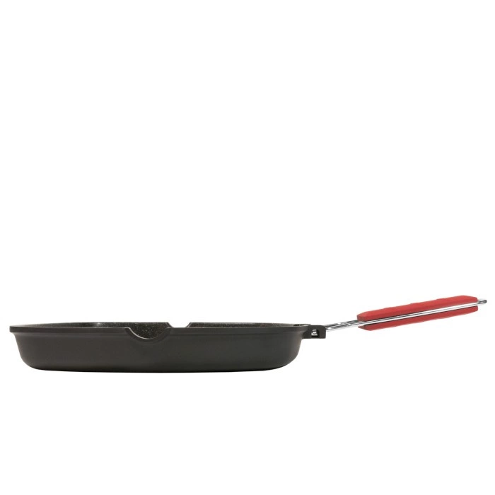 - żeliwo – żeliwna patelnia grillowa doskonale akumuluje i równomiernie rozprowadza ciepło, dzięki czemu potrawy są idealnie wysmażone i pełne smaku;