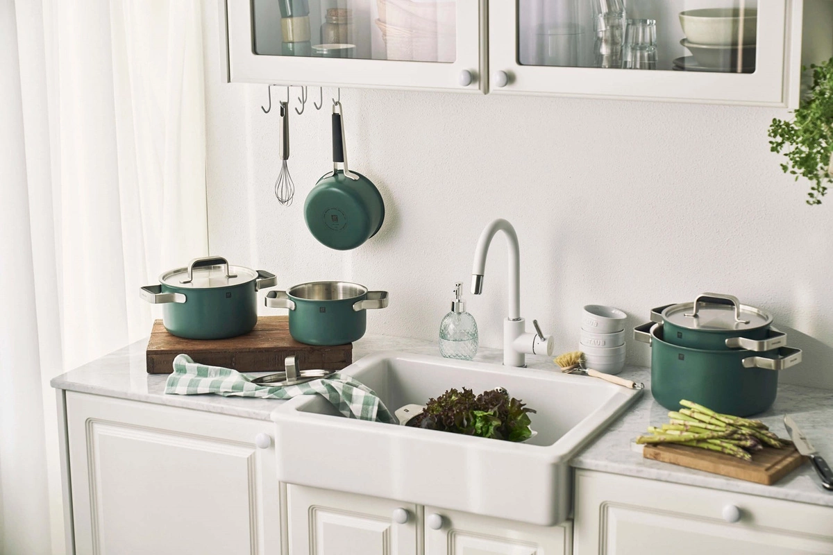 Patelnia ZWILLING Pure w eleganckim zielonym kolorze to idealne połączenie nowoczesnego designu z wysoką funkcjonalnością. Dzięki innowacyjnej trójwarstwowej konstrukcji ze stali nierdzewnej, ta patelnia zapewnia doskonałe efekty smażenia oraz równomierne przewodzenie ciepła. Niezależnie od tego, czy smażysz warzywa, mięso, czy przygotowujesz delikatne dania, ZWILLING Pure sprosta Twoim oczekiwaniom.