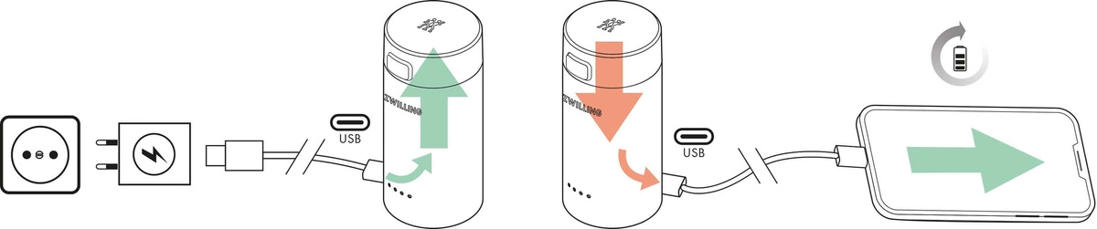 Nie tylko ładowanie akumulatorów! Zwilling Xtend pełni również funkcję powerbanku, co oznacza, że możesz naładować inne urządzenia, takie jak telefon, gdy jesteś w podróży lub z dala od gniazdka. To idealne rozwiązanie dla aktywnych osób, które potrzebują mobilności i niezawodności.