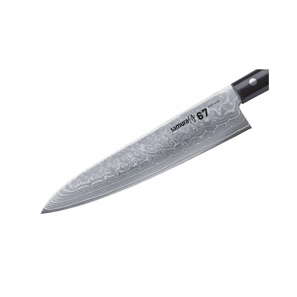 - Nóż szefa kuchni Samura DAMASCUS 67 o długości ostrza 20,8 cm to profesjonalne narzędzie stworzone z myślą o najbardziej wymagających użytkownikach.
