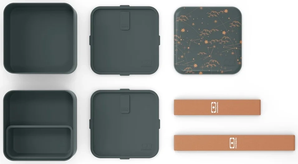 - Lunchbox Bento Square 14x14 cm w wersji Constellation to kompaktowy i stylowy pojemnik na posiłki z motywem gwiazdozbiorów.