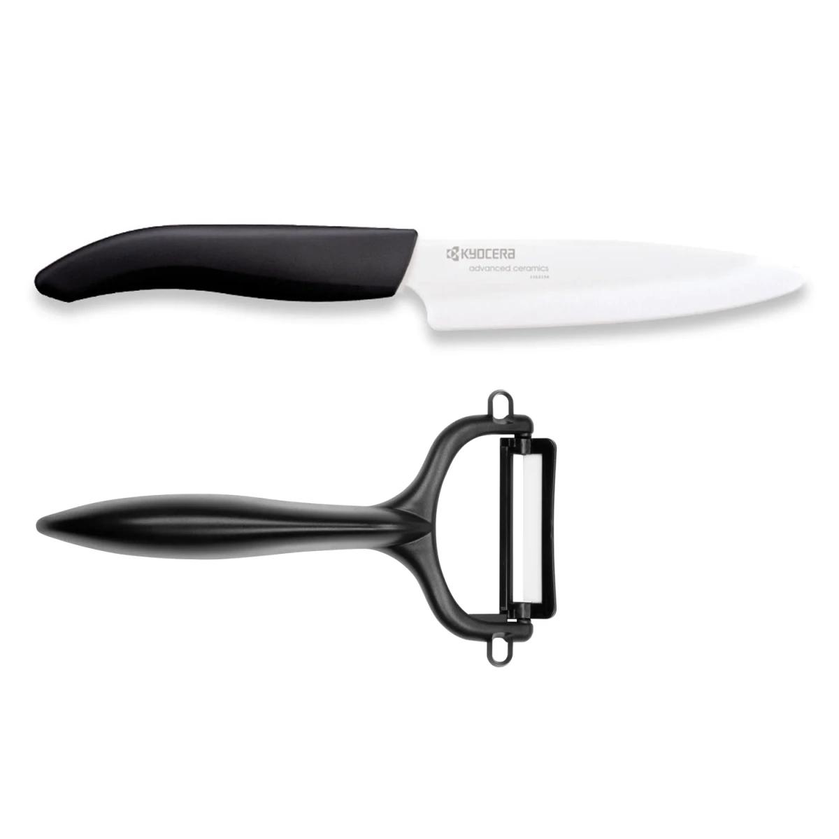Zestaw: nóż uniwersalny 11 cm i obieraczka 4 cm – Kyocera Gen, czarny