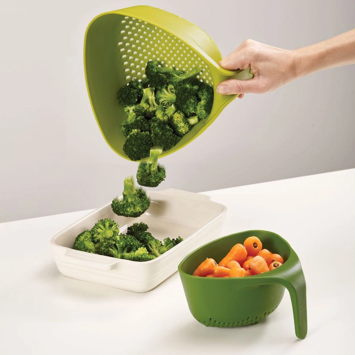 - Zestaw durszlaków Joseph Joseph w kolorze zielonym to praktyczne rozwiązanie do codziennego gotowania. Zawiera dwa durszlaki o różnych rozmiarach – idealne do odcedzania makaronu, warzyw, owoców czy ryżu.