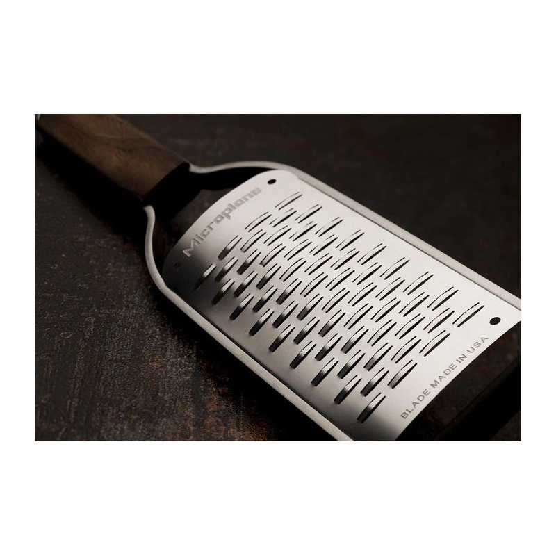 Dzięki niezwykle ostrym ostrzom tarka Microplane świetnie sprawdza się przy ścieraniu twardych serów, takich jak Parmezan, a także skórki cytrusowej, czosnku, imbiru, gałki muszkatołowej, czekolady i wielu innych składników. Nadaje się zarówno do dań słodkich, jak i wytrawnych.