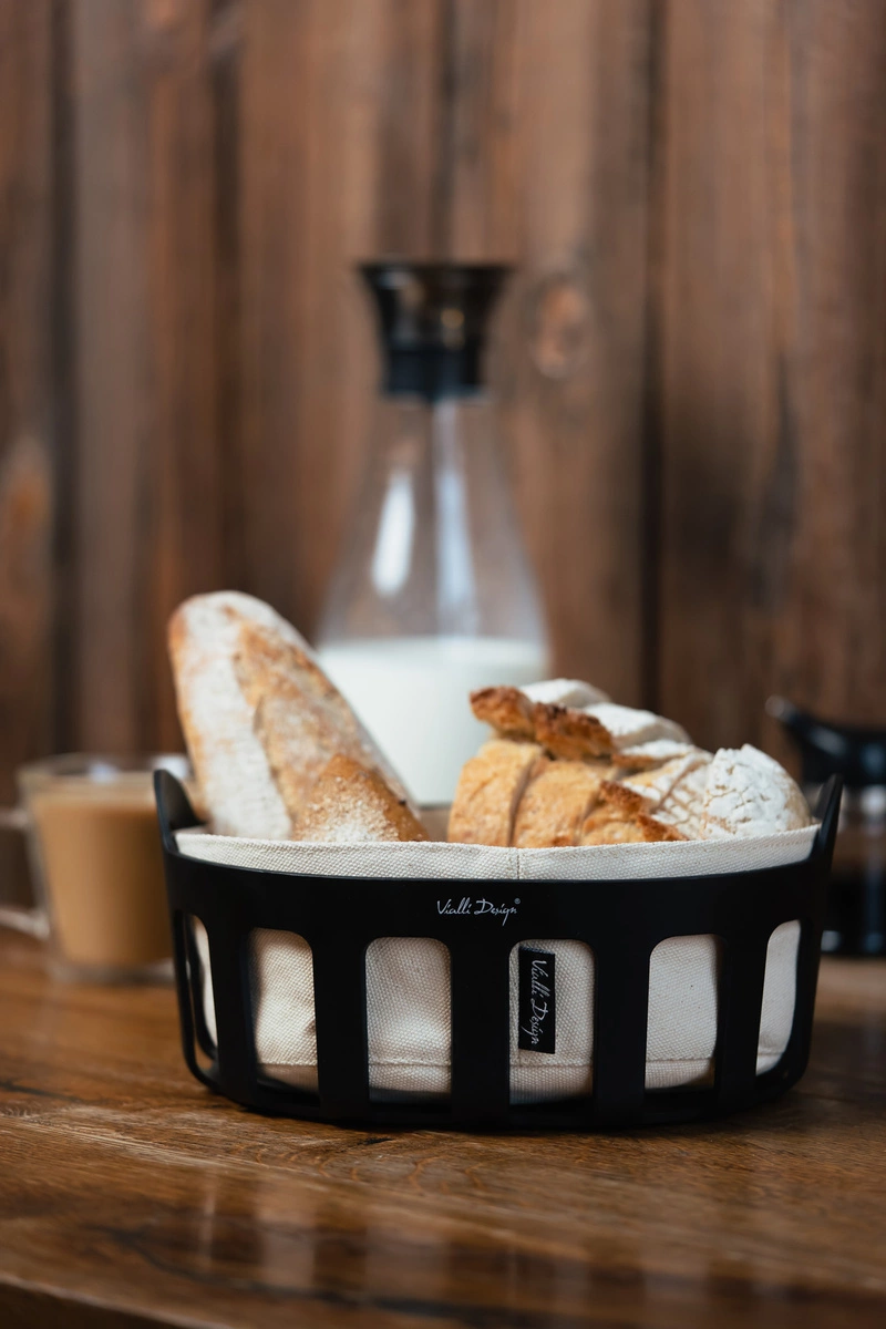 - Elegancki koszyk na pieczywo z bawełnianym wkładem, idealny do kuchni. Dodaj stylu i funkcjonalności swojemu stołowi z Vialli Design.