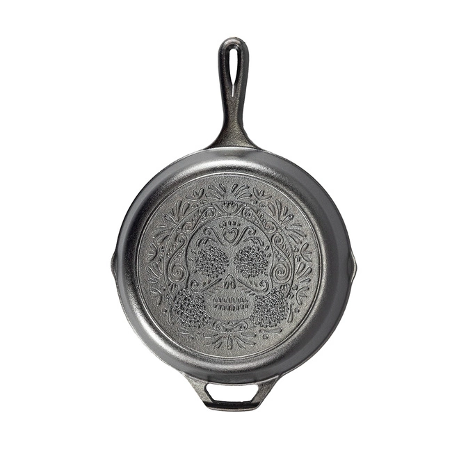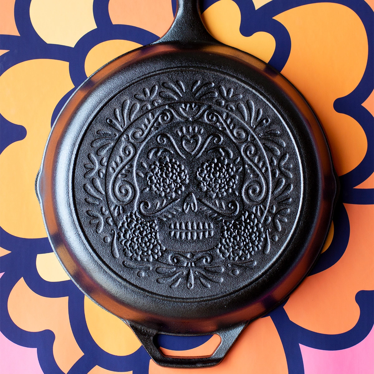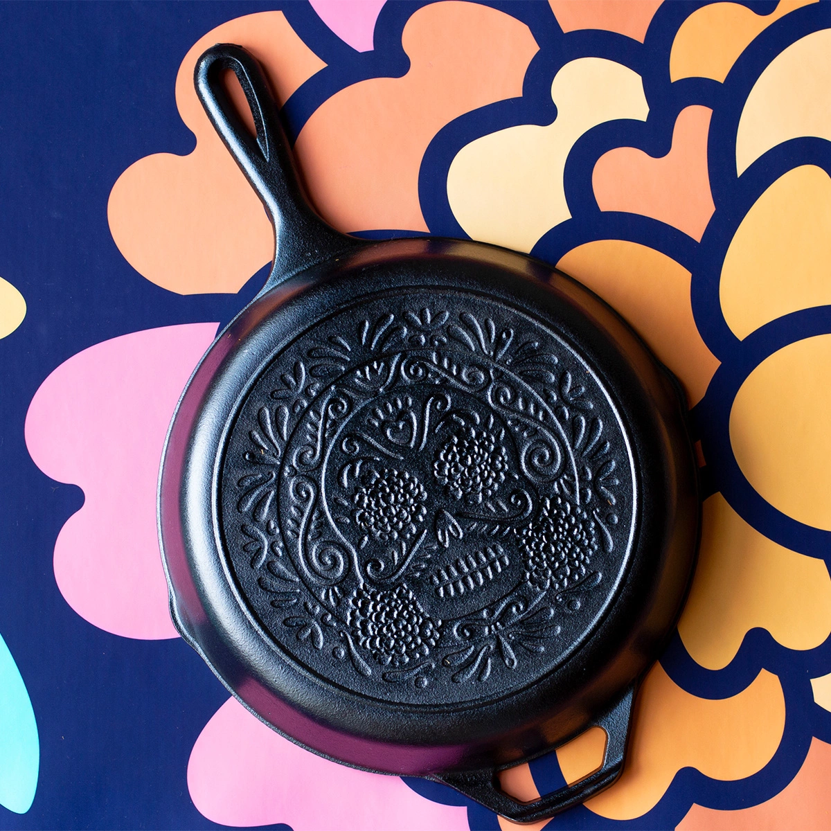 Patelnia żeliwna 26 cm CZASZKA - Lodge to nie tylko narzędzie kuchenne, ale również dzieło sztuki, które wprowadzi do Twojej kuchni odrobinę meksykańskiego stylu. Stworzona przez utalentowaną artystkę Lourdes Villagómez, patelnia ozdobiona jest wzorem meksykańskiej czaszki Sugar Skull, będącym hołdem dla tradycji obchodów Dnia Zmarłych. Dzięki temu, każdy posiłek przygotowany na tej patelni zyska wyjątkowy charakter i atmosferę.