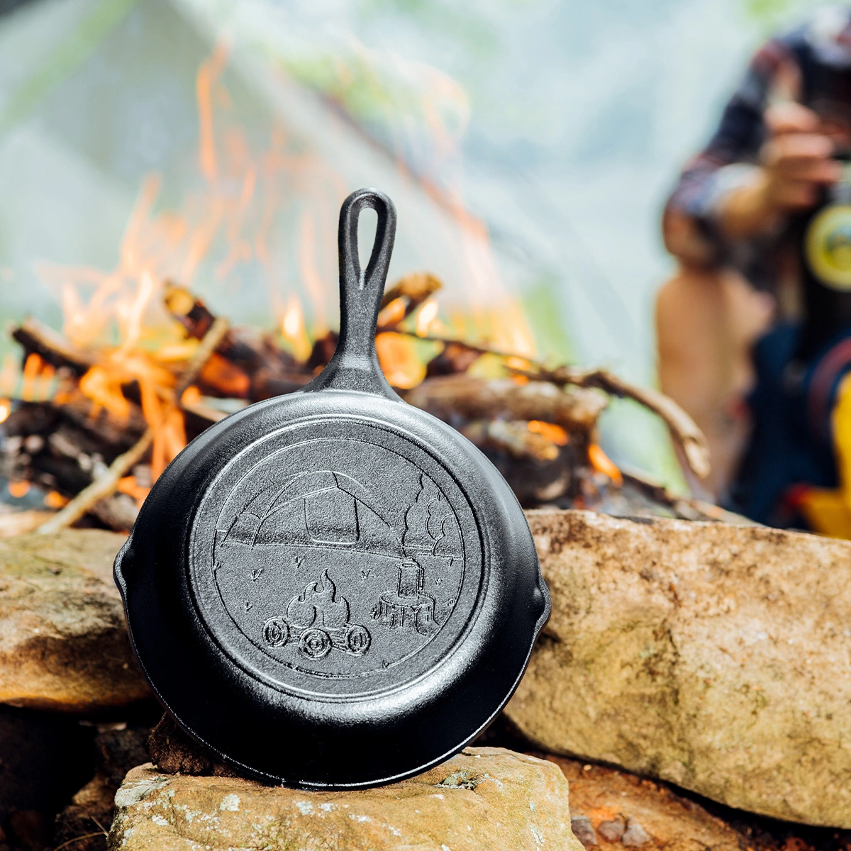 - Odkryj magię gotowania z patelnią żeliwną TENT Wanderlust. Idealna do smażenia, duszenia i pieczenia, zapewnia równomierne rozprowadzanie ciepła i trwałość.