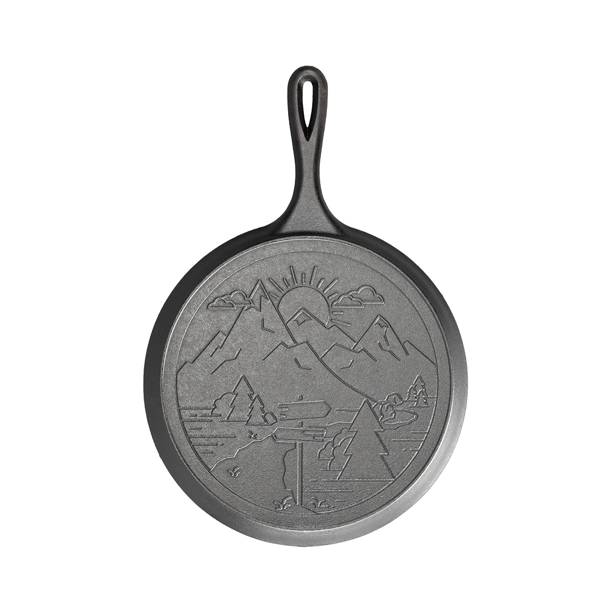 - Odkryj radość gotowania z patelnią żeliwną MOUNTAIN Wanderlust. Idealna do naleśników, zapewnia równomierne nagrzewanie i doskonałe rezultaty w każdej kuchni.