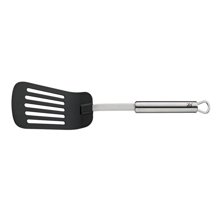Łopatka Profi Plus 32 cm WMF to niezbędny element wyposażenia każdej kuchni. Dzięki swojej funkcjonalności i trwałości, stanie się Twoim ulubionym narzędziem do przewracania mięs, ryb, naleśników i innych potraw. Wykonana z najwyższej jakości materiałów, zapewnia komfort i bezpieczeństwo podczas gotowania.