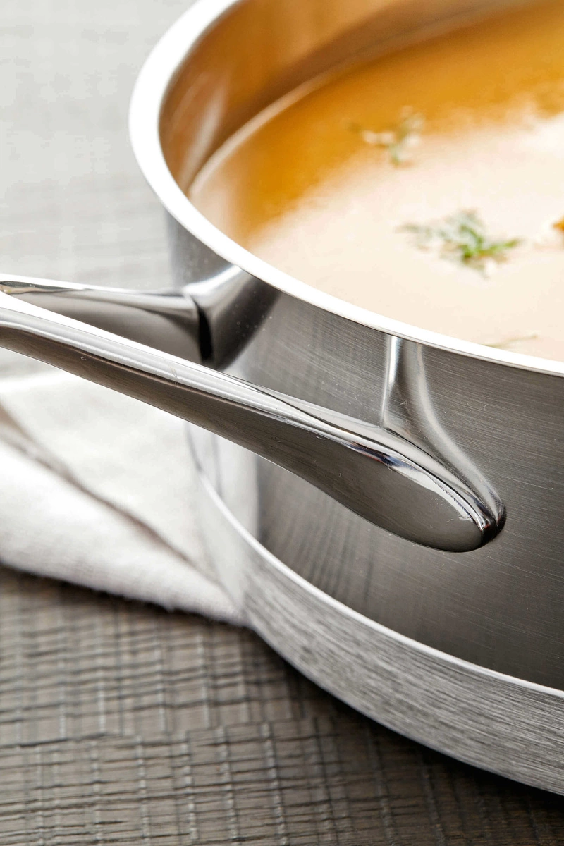 Patelnia głęboka Demeyere Atlantis 7 wyróżnia się 7-warstwowym dnem InductoSeal, które zapewnia doskonałe przewodnictwo ciepła i umożliwia równomierne rozprowadzanie temperatury na całej powierzchni. Dzięki temu potrawy są idealnie przygotowane, niezależnie od tego, czy smażysz, dusisz czy gotujesz. Patelnia została wyposażona w rdzeń z miedzi, który jeszcze bardziej poprawia wydajność energetyczną naczynia i pozwala oszczędzać energię podczas gotowania.