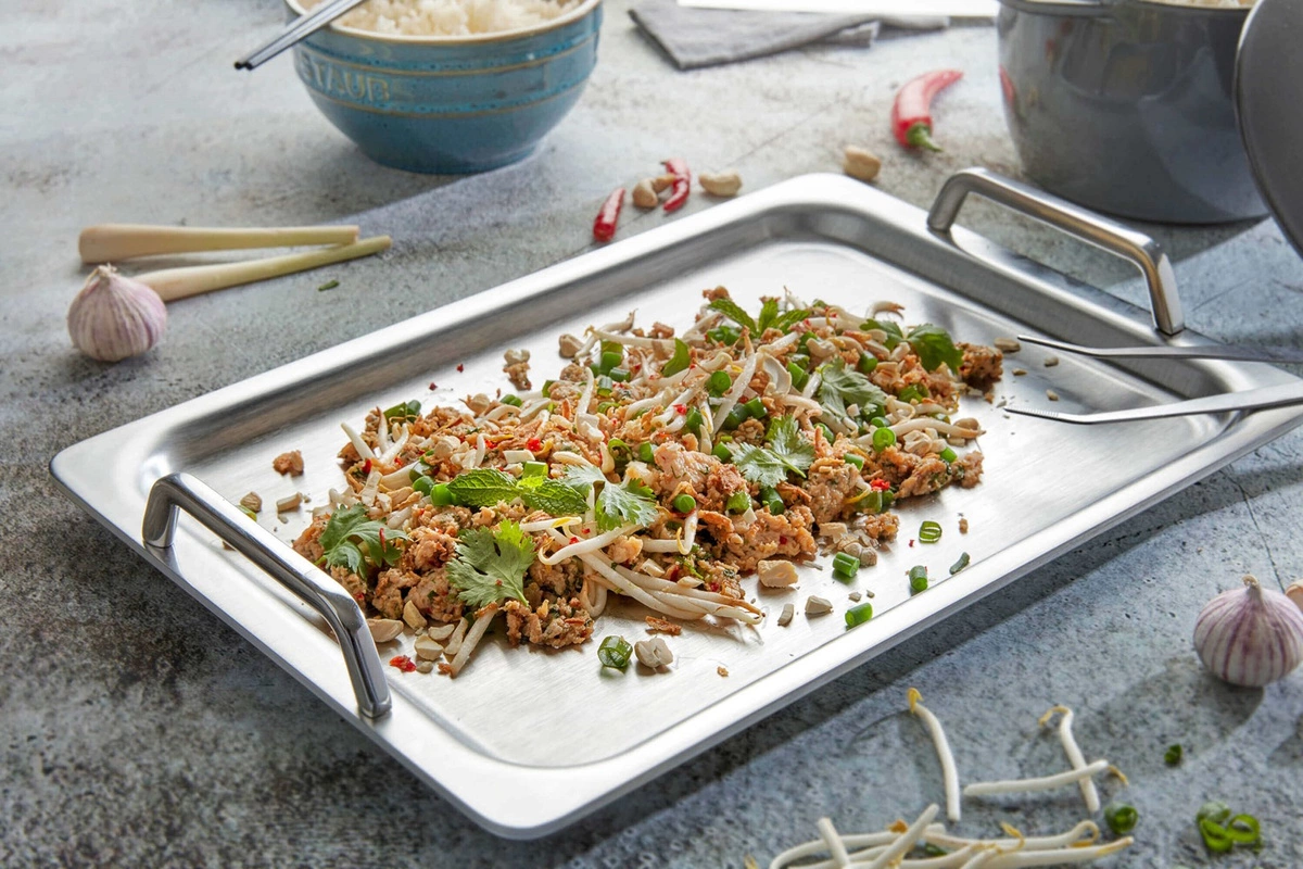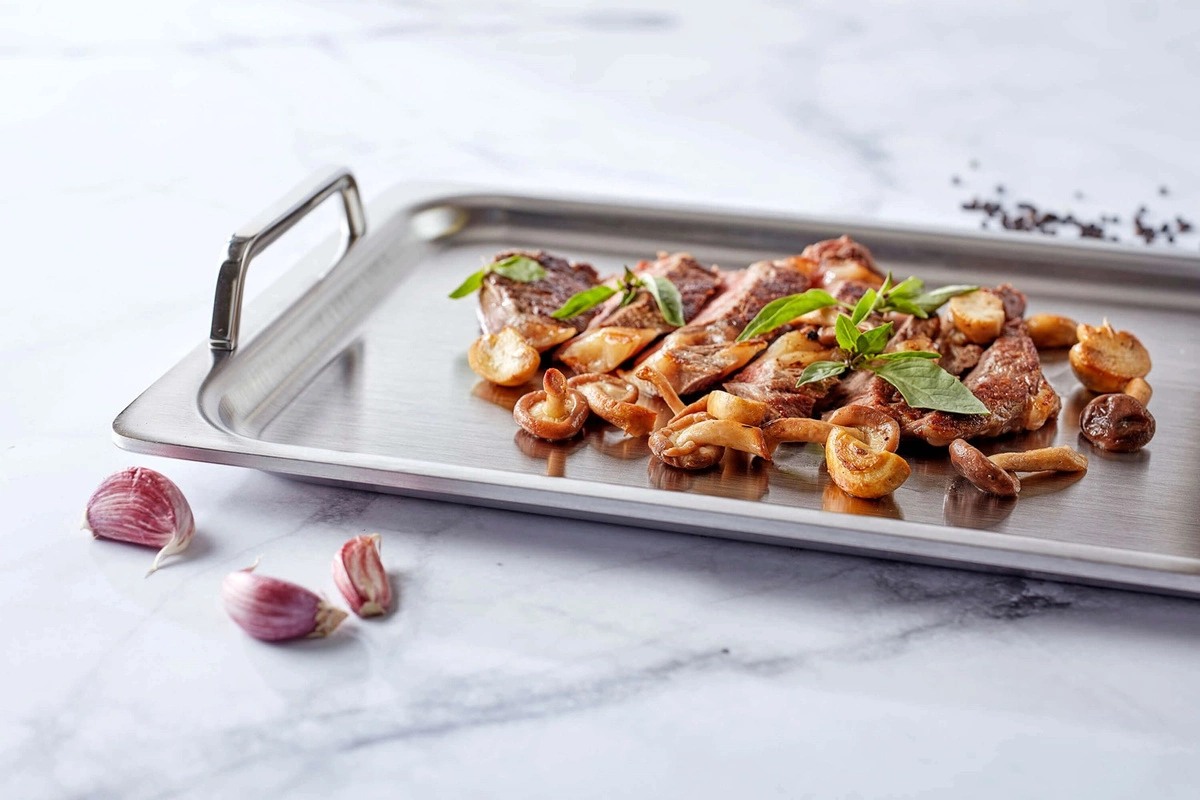 Dzięki płycie stalowej Demeyere Specialities 5 Twoja kuchnia stanie się miejscem kulinarnych eksperymentów. Jej płaska, szeroka powierzchnia umożliwia wygodne smażenie mięs, ryb, warzyw czy naleśników, a także podgrzewanie i serwowanie potraw bezpośrednio na stole. To również idealny wybór na imprezy – możesz przygotowywać jedzenie na oczach gości, tworząc niepowtarzalny klimat i zachęcając do wspólnego gotowania.