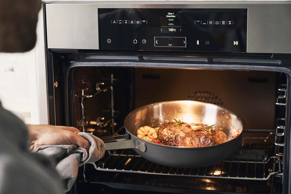 - Optymalne magazynowanie ciepła – wielowarstwowe dno sprawia, że patelnia długo utrzymuje temperaturę, co przekłada się na mniejsze zużycie energii.