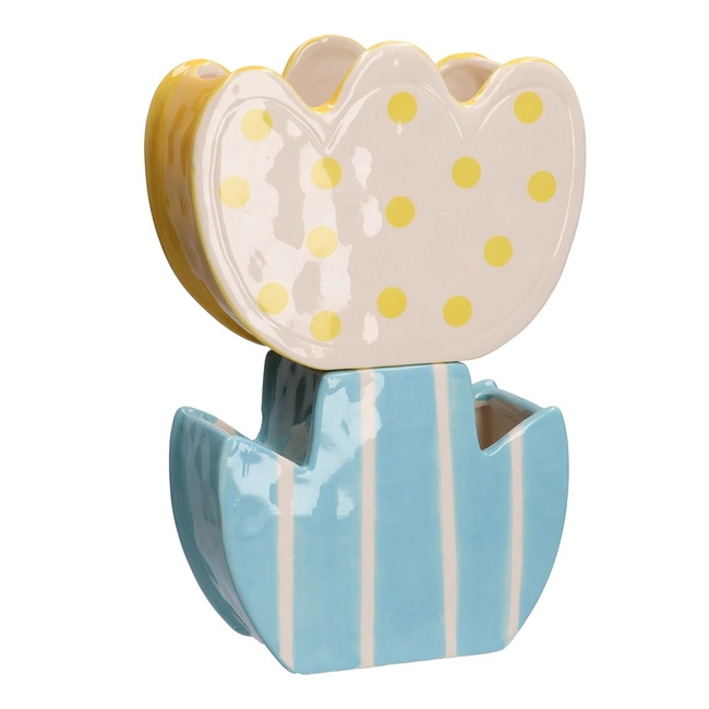 Podwójny Wazon Tulipan pozwala na tworzenie oryginalnych kompozycji kwiatowych, które odmienią każde wnętrze. Możesz postawić w nim zarówno pojedyncze tulipany, jak i bujne bukiety sezonowych kwiatów. Dzięki dwóm komorom, z łatwością połączysz różne gatunki roślin lub zestawisz żywe kwiaty z suszonymi trawami, tworząc niepowtarzalne dekoracje.