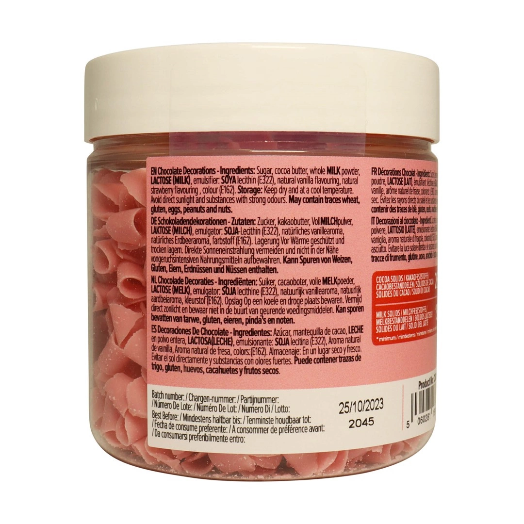 Dodaj niepowtarzalny smak i wygląd swoim wypiekom oraz deserom dzięki wiórkom czekoladowym o smaku truskawki marki PME. To idealny sposób, by w prosty sposób wzbogacić swoje kulinarne dzieła o nutę luksusu i subtelnej słodyczy. Starannie wyselekcjonowane składniki oraz oryginalna belgijska czekolada gwarantują doskonały smak oraz estetykę każdej dekoracji.