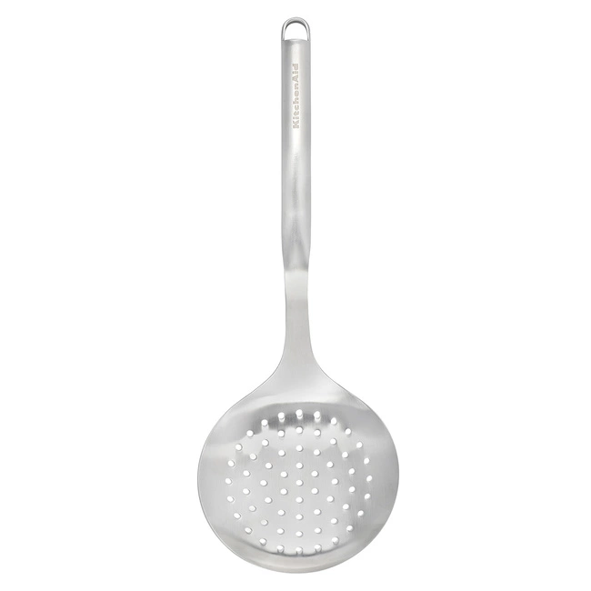 - Wytrzymała łyżka cedzakowa KitchenAid z wysokiej jakości stali nierdzewnej – idealna do odcedzania i serwowania Twoich ulubionych potraw.