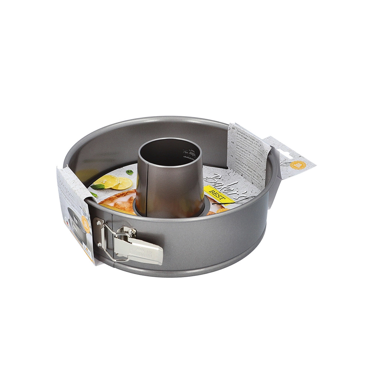 Birkmann tortownica dwa rodzaje dna 26 cm Baker's Best to niezastąpione narzędzie w każdej kuchni, która ceni sobie wszechstronność i niezawodność. Dzięki dwóm wymiennym dnom, przygotujesz zarówno klasyczne torty, jak i wykwintne serniki czy tarty, bez konieczności kupowania kilku różnych form. Odkryj wyjątkową jakość i funkcjonalność niemieckiej marki Birkmann!