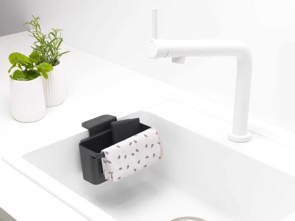 - Zorganizuj swoją przestrzeń w kuchni z eleganckim organizerem do zlewu. Idealny do przechowywania akcesoriów, ułatwia utrzymanie porządku i oszczędza miejsce.