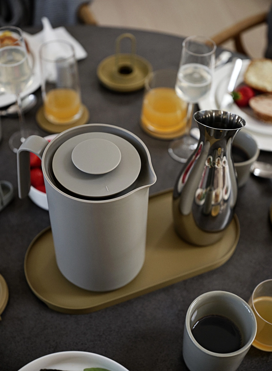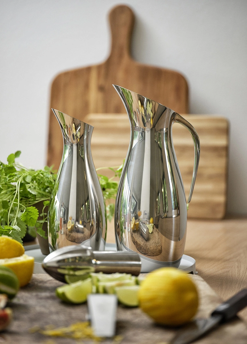 Zaprezentowany przez duet projektantów Mencke & Vagnby, dzbanek Rocks wyróżnia się smukłą, harmonijnie wygiętą sylwetką, która łączy w sobie minimalizm i subtelną wyrafinowaną formę. Brak uchwytu nadaje mu czystą, spójną linię, podkreślając jego nowoczesny charakter. Dzięki matowo polerowanej powierzchni wewnętrznej, dzbanek jest nie tylko estetyczny, ale także łatwy do utrzymania w czystości.