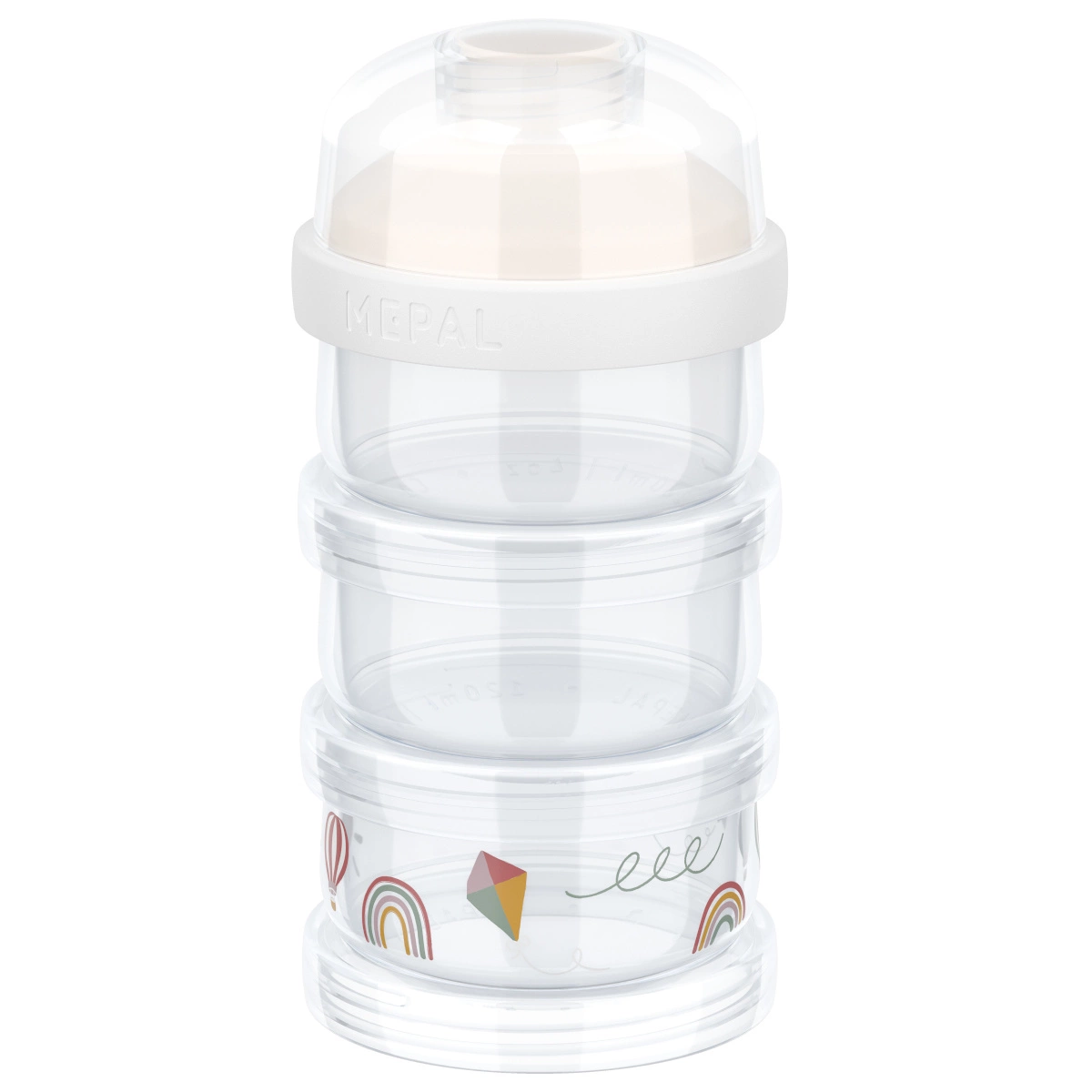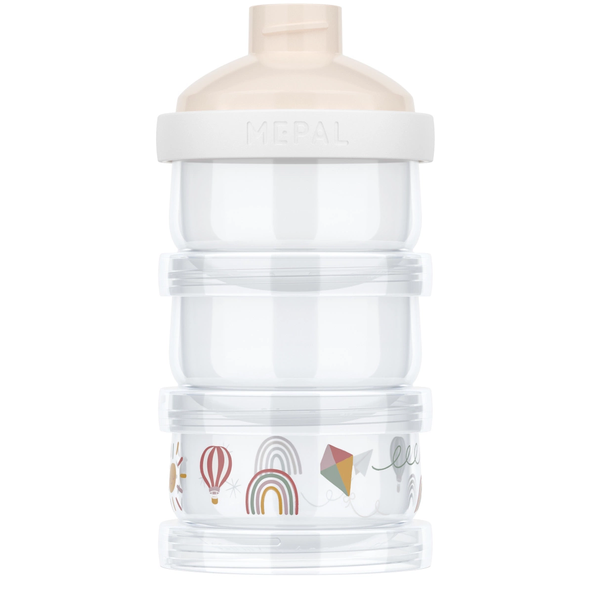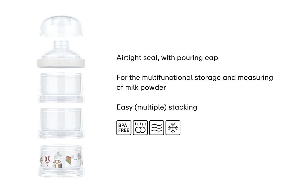 Pojemnik na mleko w proszku Mio 3-częściowy Sunshine & Rainbow to nie tylko idealne rozwiązanie do przechowywania mleka modyfikowanego. Może również służyć do przechowywania kaszek czy przekąsek, co czyni go wszechstronnym akcesorium dla każdego rodzica.