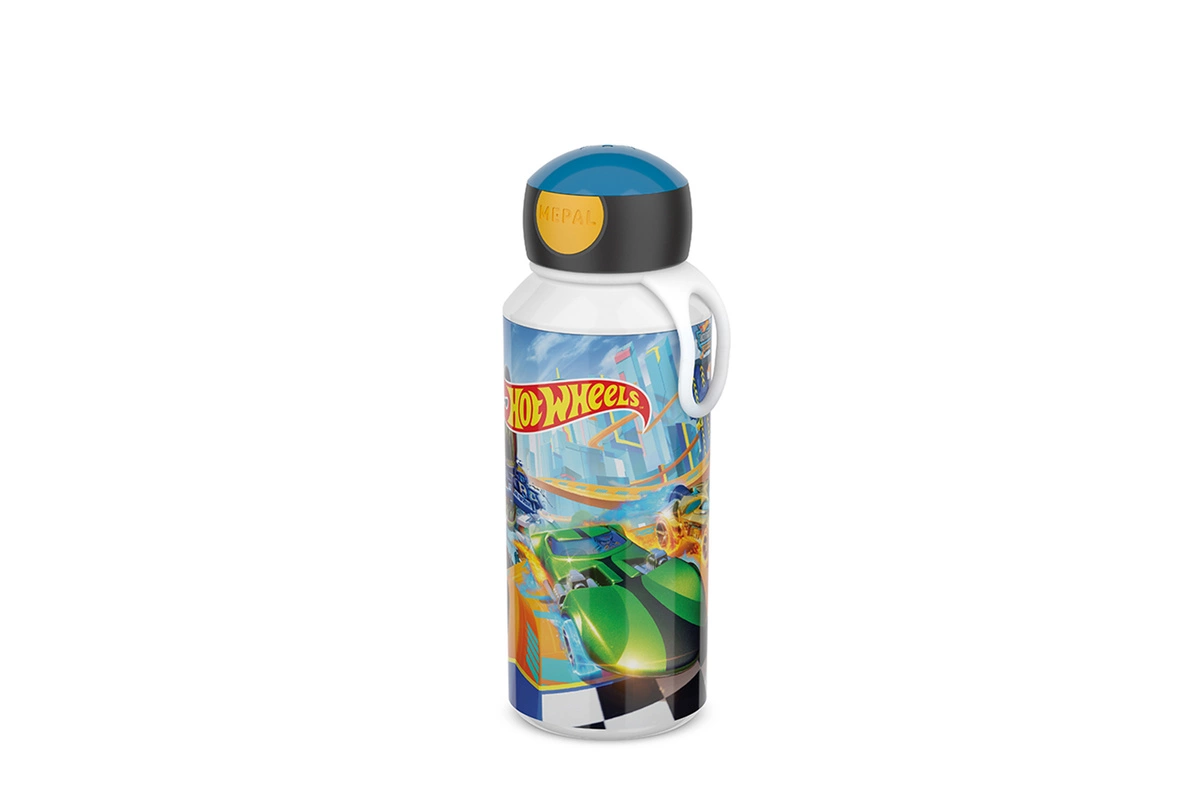 - Odkryj butelkę pop-up Campus 400 ml z motywem Hot Wheels – idealna do nauki picia dla Twojego dziecka, wygodna i praktyczna na każdą przygodę!