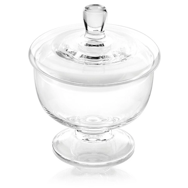 Bombonierka Toscana wyróżnia się przezroczystym, dmuchanym szkłem, które nadaje jej lekkości i elegancji. Dzięki swojemu designowi, produkt ten idealnie wpasuje się w różnorodne aranżacje wnętrz, zarówno nowoczesne, jak i klasyczne. Pokrywka nie tylko zabezpiecza zawartość, ale także dodaje całości stylowego wyglądu.