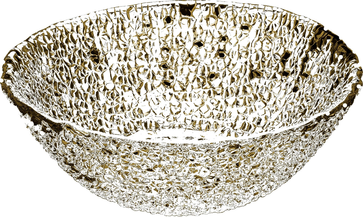 Misa Ø 20 Cm - Złota Special - IVV to wyjątkowy produkt, który łączy w sobie nowoczesny design z klasyczną elegancją. Wykonana z przezroczystego, prasowanego szkła, miska ta przyciąga wzrok swoim unikalnym wzorem, który tworzy nieregularną powierzchnię. Dzięki temu, każda misa jest niepowtarzalna i idealnie wpisuje się w różnorodne aranżacje wnętrz.