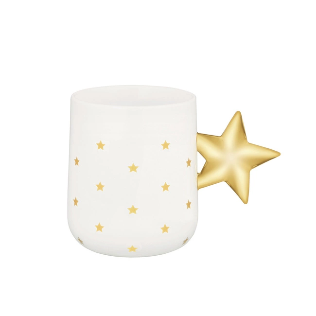 Jego **biała powierzchnia** ozdobiona motywem gwiazdy oraz subtelne detale w kolorze złota sprawiają, że kubek Delight staje się centralnym punktem każdej zastawy. Idealnie komponuje się z innymi elementami kolekcji Niki Zupanc, takimi jak ręcznie dmuchane szklane bombki czy eleganckie słoiki na ciasteczka. Dzięki temu możesz stworzyć harmonijną i stylową aranżację na świątecznym stole.