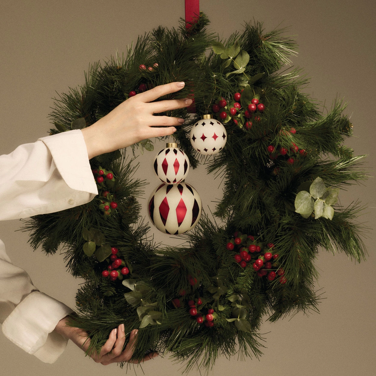 Kolekcja Delight to marzenie, które łączy w sobie klasyczne kolory świąt: biel, czerwień i złoto. Nika Zupanc reinterpretując te tradycyjne barwy, wprowadza do swoich projektów nowoczesny i eklektyczny język, który wywołuje radosny dialog między przeszłością a teraźniejszością. Każda bombka to nie tylko dekoracja, ale także wyraz artystycznej wizji, która ma na celu wprowadzenie radosnej atmosfery do świątecznego otoczenia.