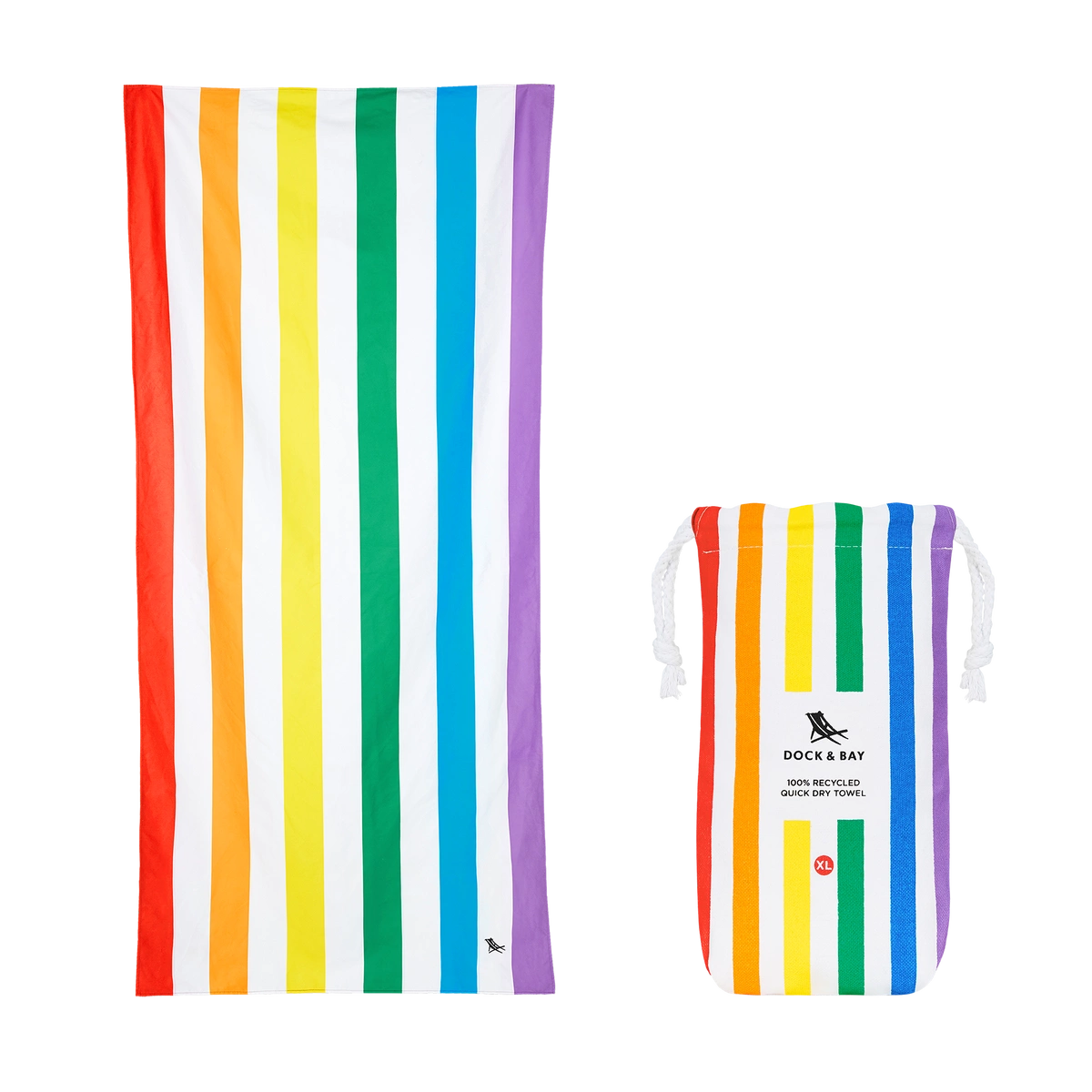 Wybierz Ręcznik Plażowy Rainbow Skies od Dock & Bay i ciesz się komfortem oraz świeżością, gdziekolwiek się wybierzesz!