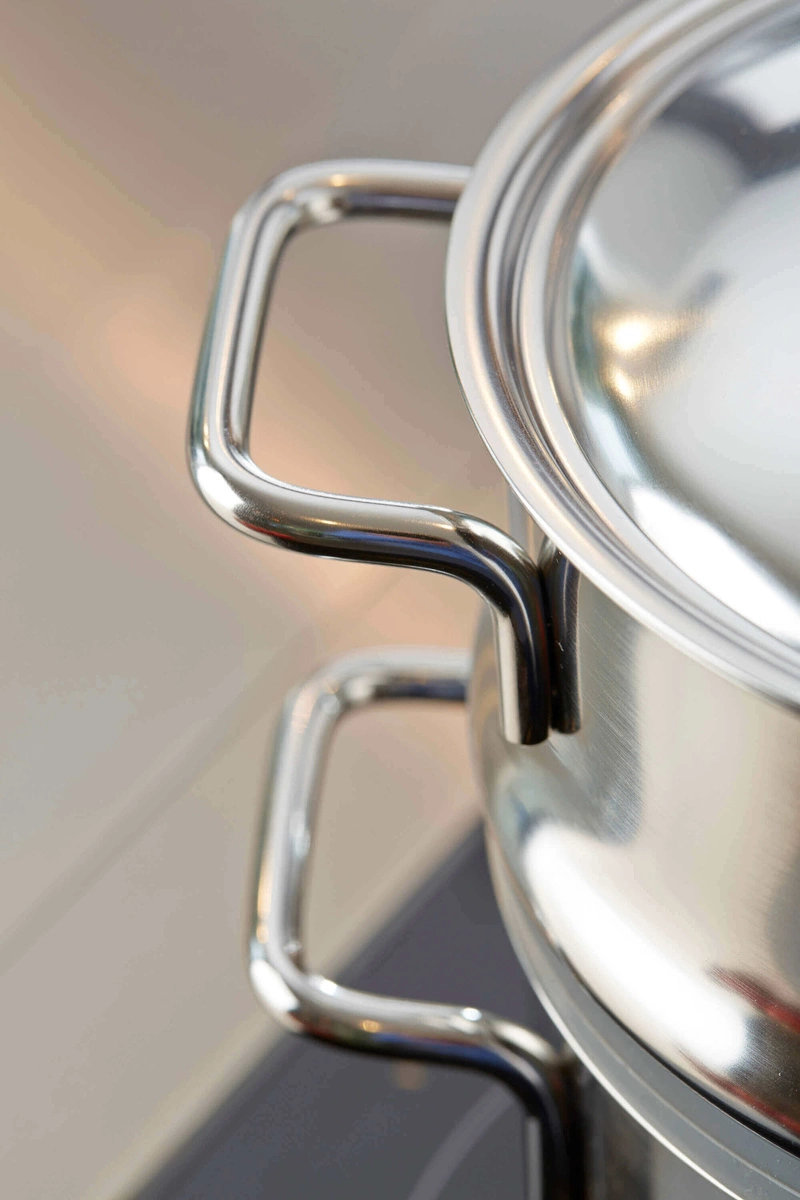Wkład do gotowania na parze Demeyere Apollo wykonany jest z szlachetnej stali nierdzewnej 18/10 z powłoką Silvinox®, co sprawia, że jest nie tylko higieniczny, ale również łatwy w pielęgnacji. Jego elegancki wygląd doskonale wpasuje się w każdą kuchnię, a wysoka jakość materiałów zapewnia długowieczność produktu.