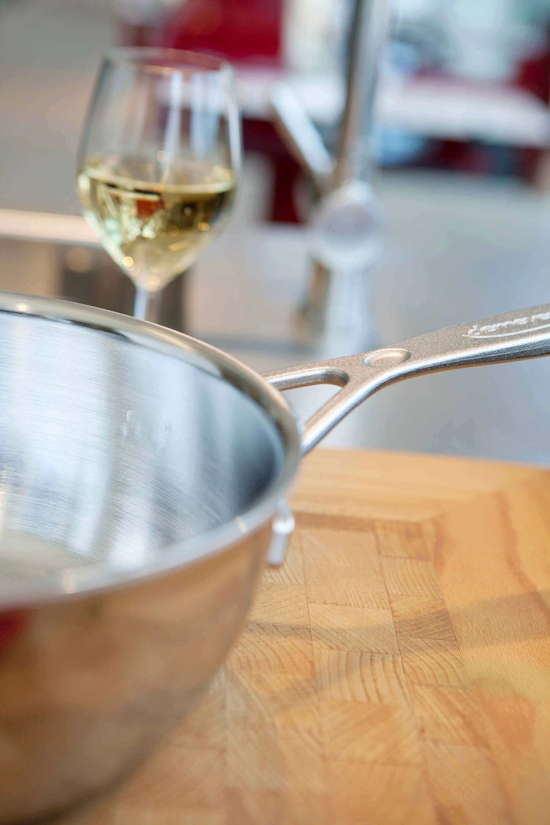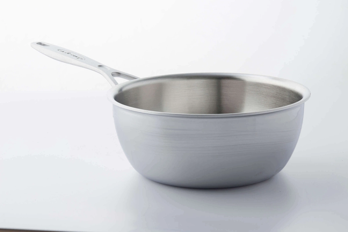 - Wysoka jakość materiałów: Rondelek wykonano z pięciowarstwowego połączenia szlachetnej stali nierdzewnej i aluminium, co gwarantuje szybkie i równomierne rozprowadzanie ciepła.