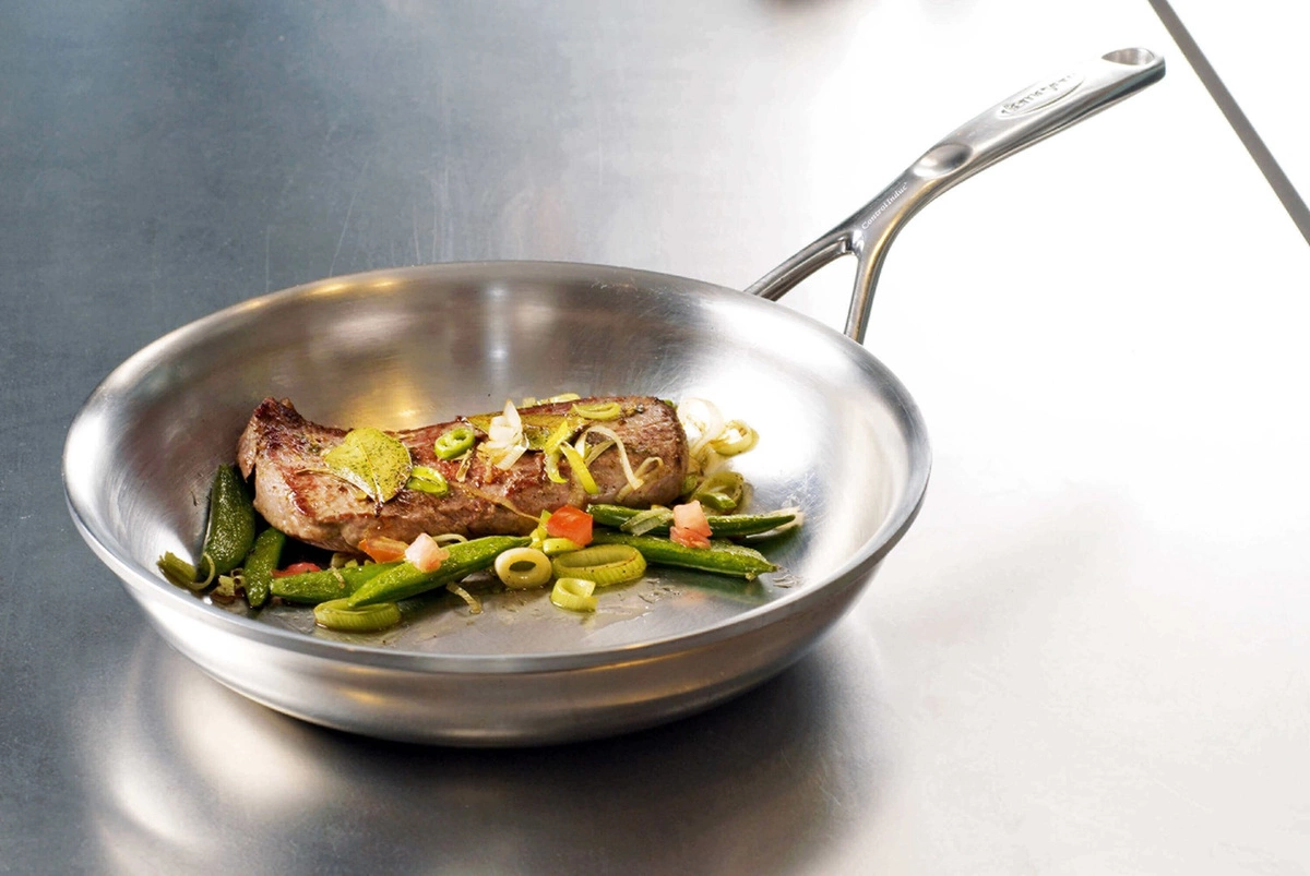 Patelnia płytka DEMEYERE PROLINE 7 o średnicy 28 cm to niezastąpiony element wyposażenia każdej nowoczesnej kuchni. Wykonana z wysokiej jakości stali nierdzewnej, jest idealna do przygotowywania różnorodnych potraw, od delikatnych dań warzywnych, po chrupiące sznycle czy soczystego łososia. Dzięki innowacyjnej konstrukcji i zastosowanym technologiom, ta patelnia zapewnia wyjątkową wydajność i komfort użytkowania.
