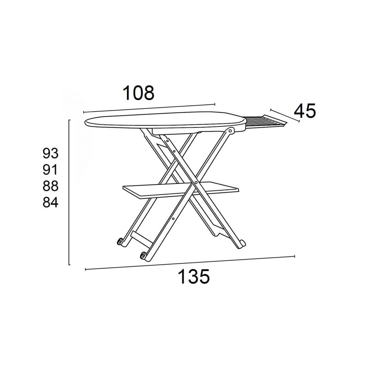 - Regulowana wysokość: Możliwość dostosowania wysokości na 4 poziomach (84 cm, 88 cm, 91 cm i 93 cm) pozwala na prasowanie w wygodnej pozycji, minimalizując napięcie w plecach i ramionach.