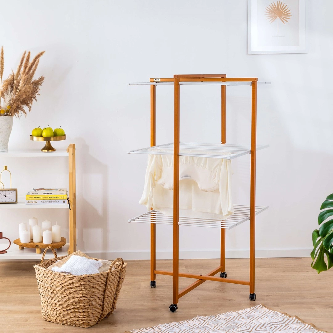 Wykonana z litego drewna bukowego, suszarka KARISMA zapewnia stabilność i wytrzymałość, co jest kluczowe podczas użytkowania. Jej druty, pokryte aluminium, są odporne na korozję, co gwarantuje długotrwałe użytkowanie i odporność na działanie wilgoci. Dzięki niezależnym poziomom możesz wygodnie rozmieszczać pranie, co ułatwia proces suszenia.