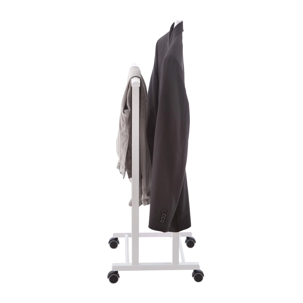 Stojak ATRI został wyposażony w gumowe kółka, które umożliwiają łatwe przemieszczanie go między pomieszczeniami. Nie musisz martwić się o rysowanie podłóg – kółka są zaprojektowane tak, aby były delikatne dla powierzchni. Dodatkowo, stojak jest bardzo prosty w montażu, co pozwala na szybkie i bezproblemowe użytkowanie.