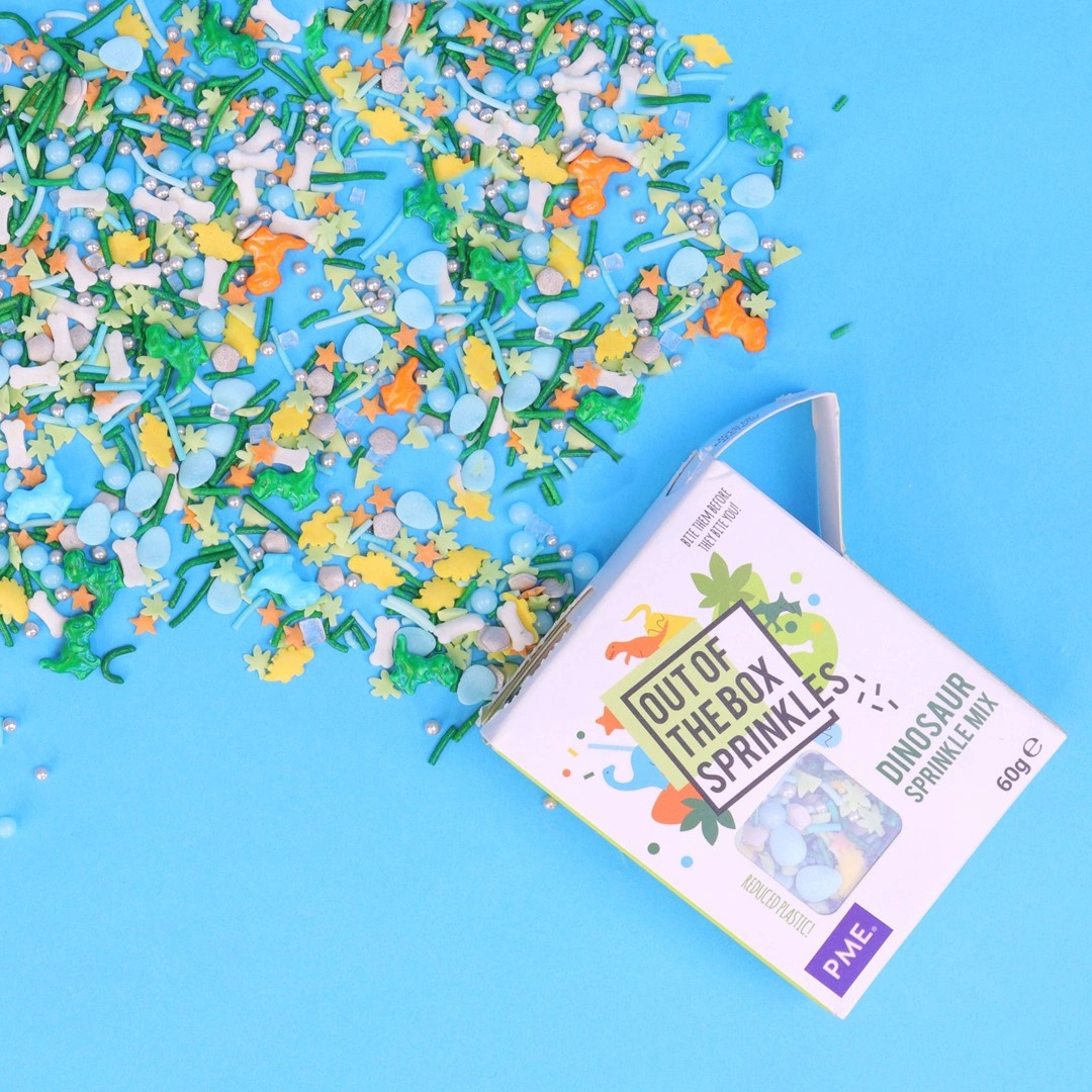 - Odkryj radość dekorowania z PME Posypką cukrową dinozaur! Idealna do ciast i deserów, wprowadzi magię prehistorycznych czasów na Twoje przyjęcia.