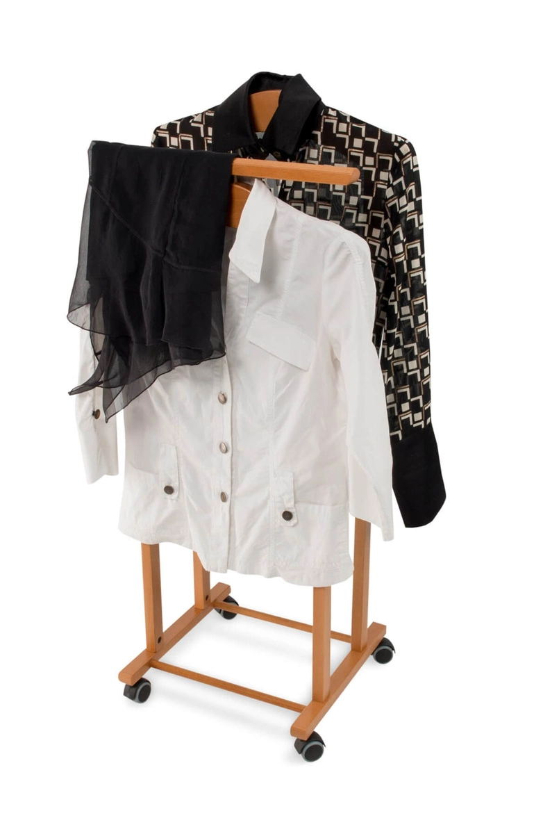Wieszak TRENDY to idealne rozwiązanie do organizowania odzieży dziennej lub przygotowywania ubrań na kolejny dzień. Dzięki gumowym stopkom u podstawy, wieszak jest stabilny i nie rysuje podłogi, co czyni go praktycznym wyborem do każdego wnętrza.