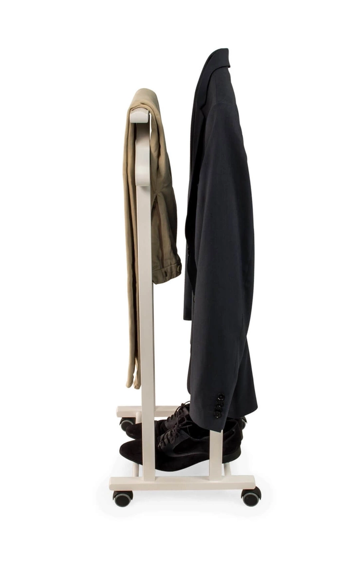 Wieszak do sypialni ARREDAMENTI TRENDY to doskonałe połączenie funkcjonalności i estetyki. Jego biała, lakierowana powierzchnia oraz minimalistyczny design sprawiają, że jest idealnym rozwiązaniem do nowoczesnych wnętrz. Bez względu na to, czy potrzebujesz miejsca na odzież w sypialni, garderobie, przedpokoju czy pokoju hotelowym, ten wieszak z pewnością spełni Twoje oczekiwania.