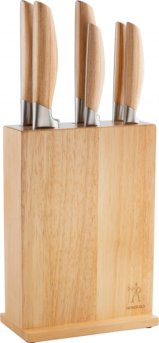 Wszystkie noże są przechowywane w solidnym bloku z wysokogatunkowego drewna kauczukowego. Dzięki temu, masz je zawsze pod ręką, a jednocześnie blok stanowi elegancki dodatek do każdej kuchni. To idealne rozwiązanie dla osób ceniących styl, jakość i wygodę pracy.